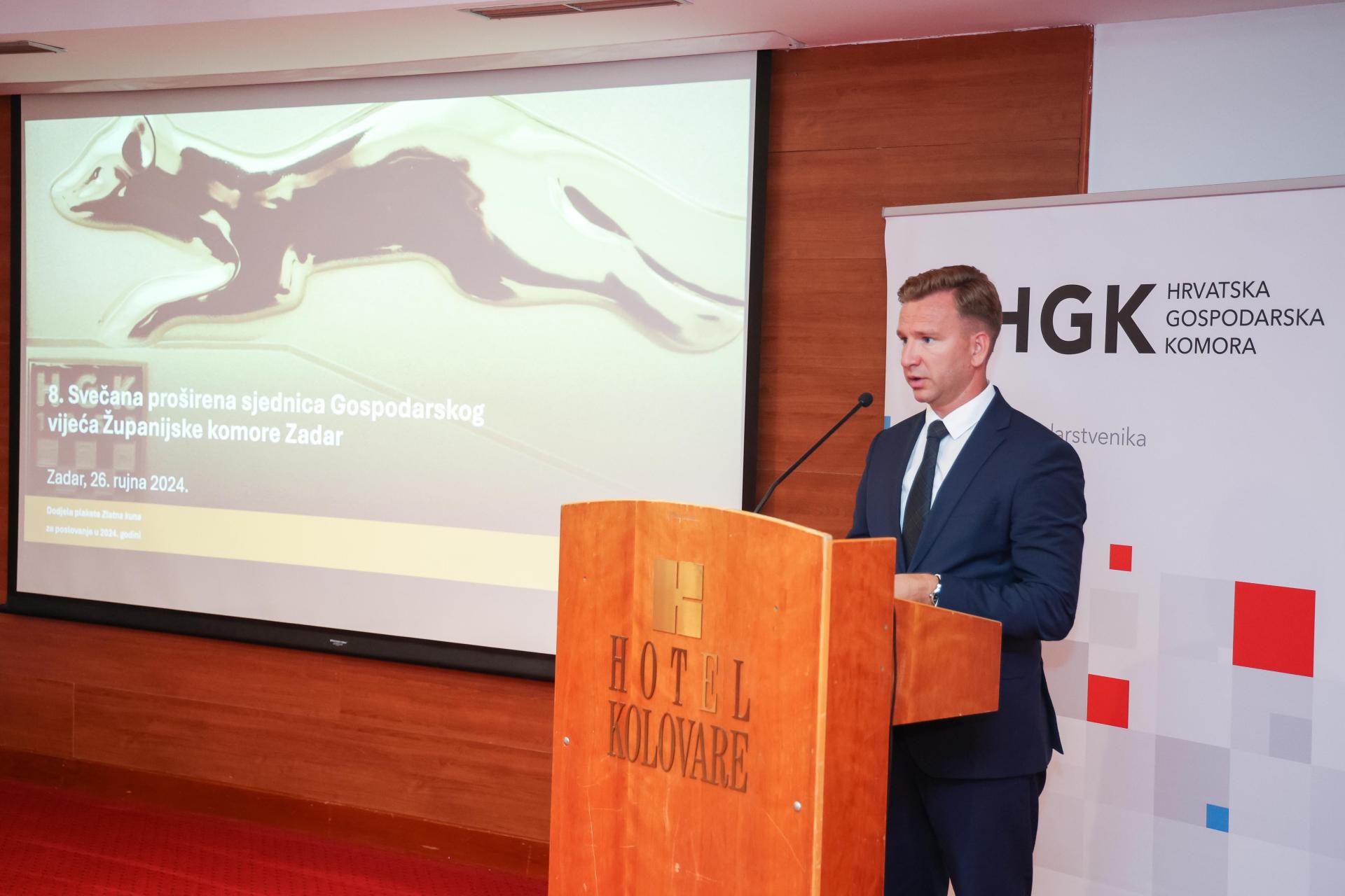 Denis Ikić, predsjednik Županijske gospodarske komore Zadar, u uvodnom je govoru rekao kako je poslovna godina 2024. bila nešto lošija, ali s rastom ukupnog prihoda, plaća i zaposlenosti, dok su s druge strane, pala su ulaganja u dugotrajnu imovinu, kao i izvoz, a vidljiv je i značajan pad stope profitabilnosti.