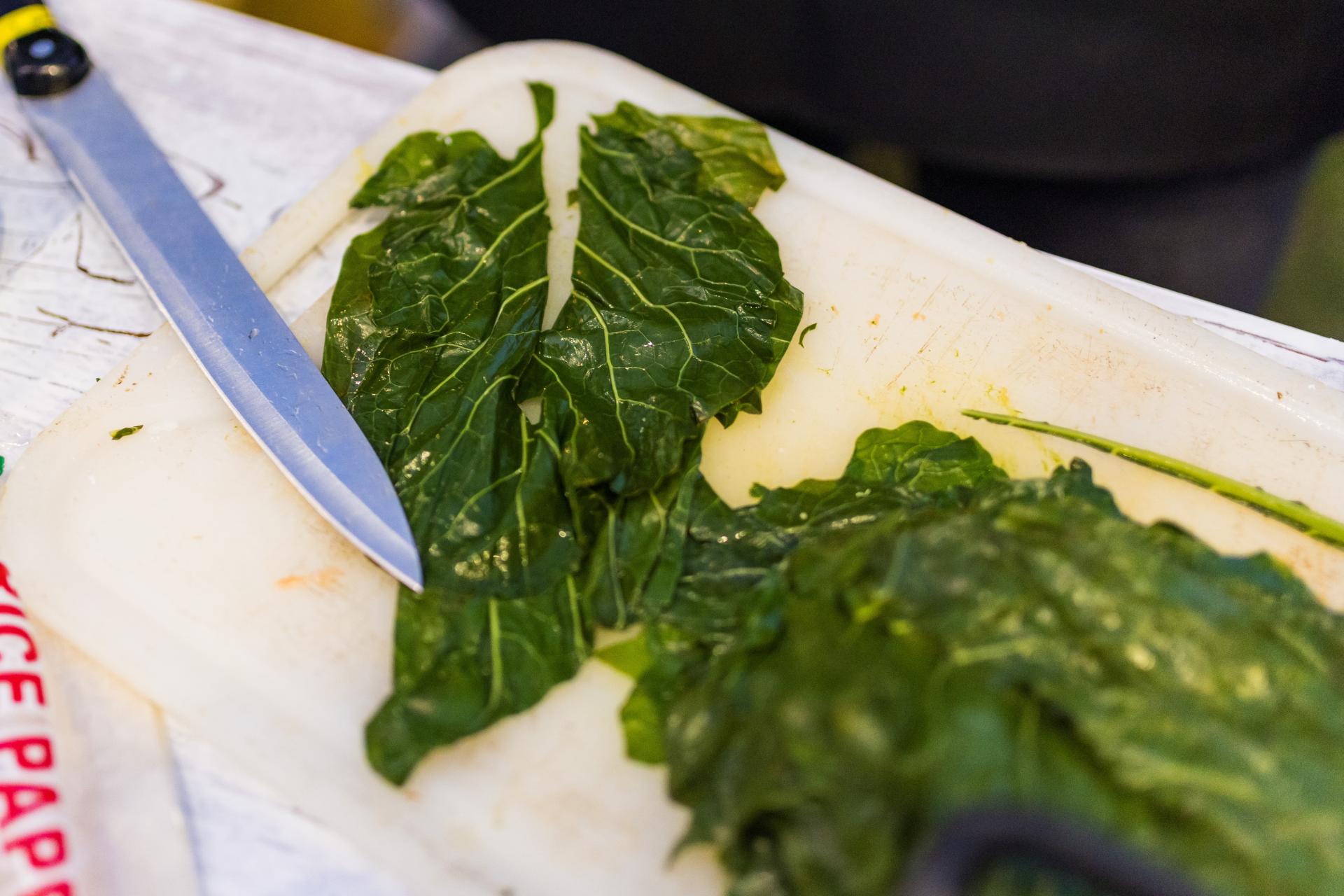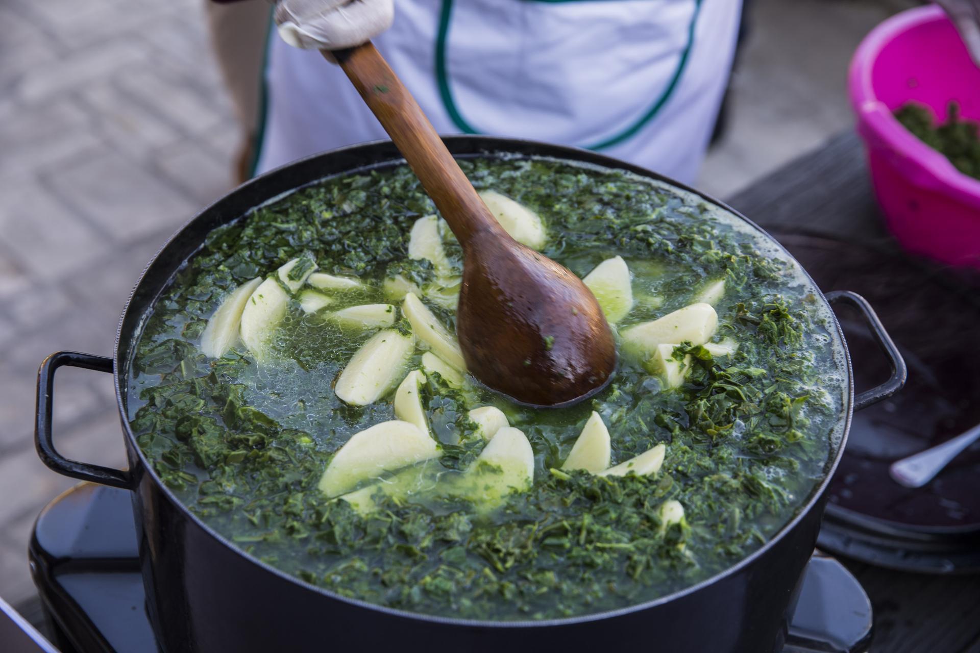 Raštiku operite, uklonite tvrde žile i narežite je na trakice. Na maslinovom ulju dinstajte luk, potom dodajte krumpir, pelate i začine. Nakon nekoliko minuta dodajte raštiku i slanutak, prelijte vodom i kuhajte oko pola sata. (ZT)
