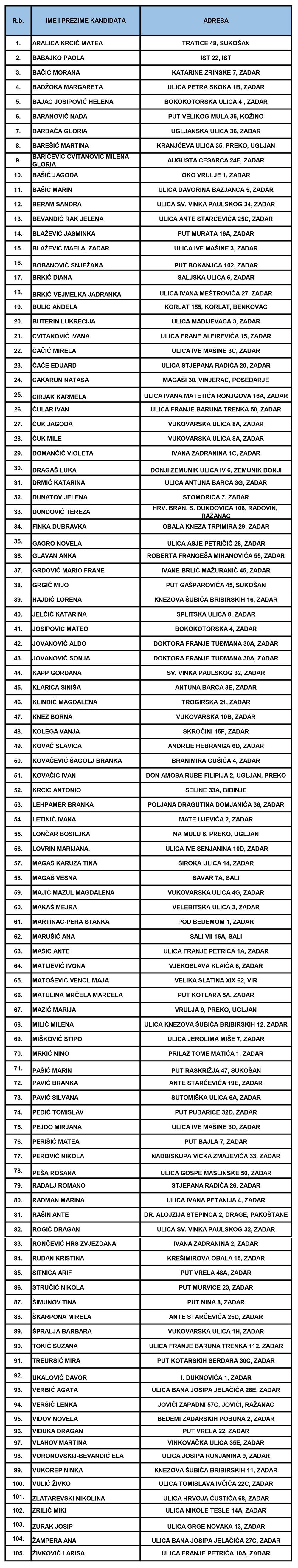 Javni poziv prijava kandidata za izbor promatrača za potrebe provedbe javnih natječaja za sva trgovačka društva i ustanove u vlasništvu Grada Zadra trajao je od 3.-17. listopada 2025. godine i zaprimljeno je 106 prijava. Povjerenstvo za izbor promatrača za četiri zaprimljene prijave zatražilo je nadopunu dokumentacije, zaključno s danom 22. listopada 2025. godine. Nadopuna dokumentacije zaprimljena je za tri prijave.