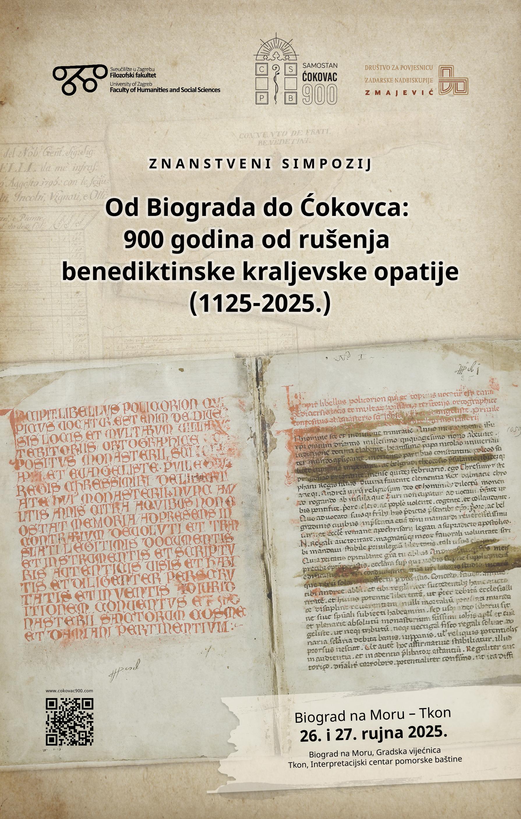 Počeo je Znanstveni simpozij “Od Biograda do Ćokovca – 900 godina od rušenja benediktinske kraljevske opatije (1125.-2025.)”, koji se danas i sutra održava u Biogradu n/m i u Tkonu na otoku Pašmanu. To je prvi u nizu događaja u sklopu proslave velikog Jubileja benediktinskog samostana sv. Kuzme i Damjana na Ćokovcu (1129.-2029.).